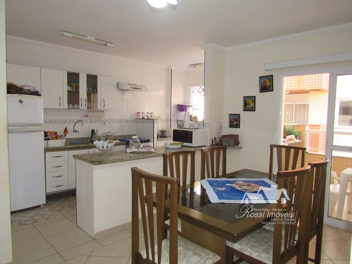 Condomínio de frente para o mar, uma ótima opção para seu descanso, com 2 dormitórios, sendo 1 suíte, dois banheiros, sala com varanda gourmet, cozinha, área de serviço, 1 vaga de garagem, portaria 24 hs,